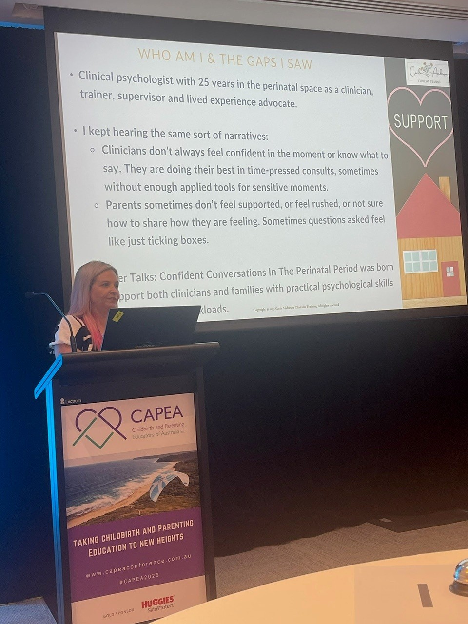 I have experience in delivering many perinatal and infant mental health training workshops for various disciplines and organizations accross my career, as well as presenting at conferences, projects collaborating with other organizations, contributing to podcasts, and participating in media interviews across a wide range of topics, including;