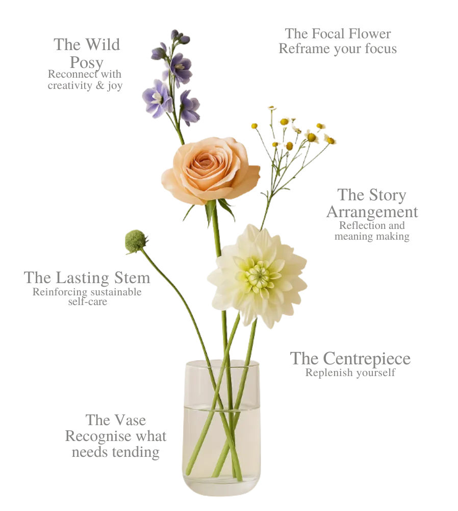 Engaging in reflective practice through floral metaphor, helping you process the emotional weight of your work in a way that’s gentle, not clinical.